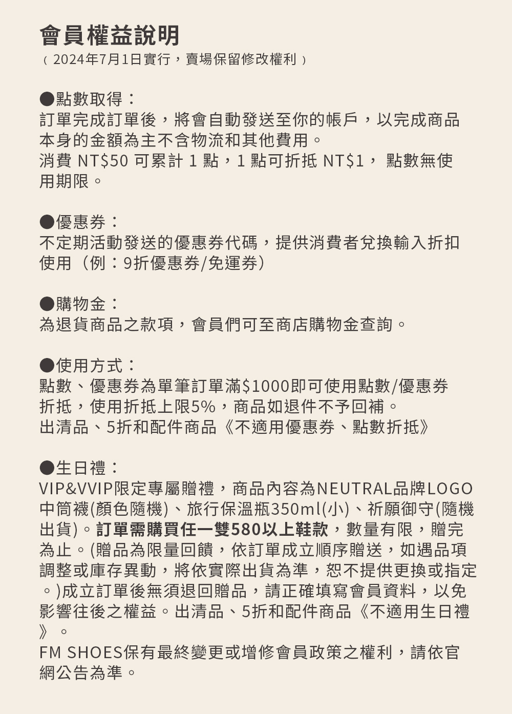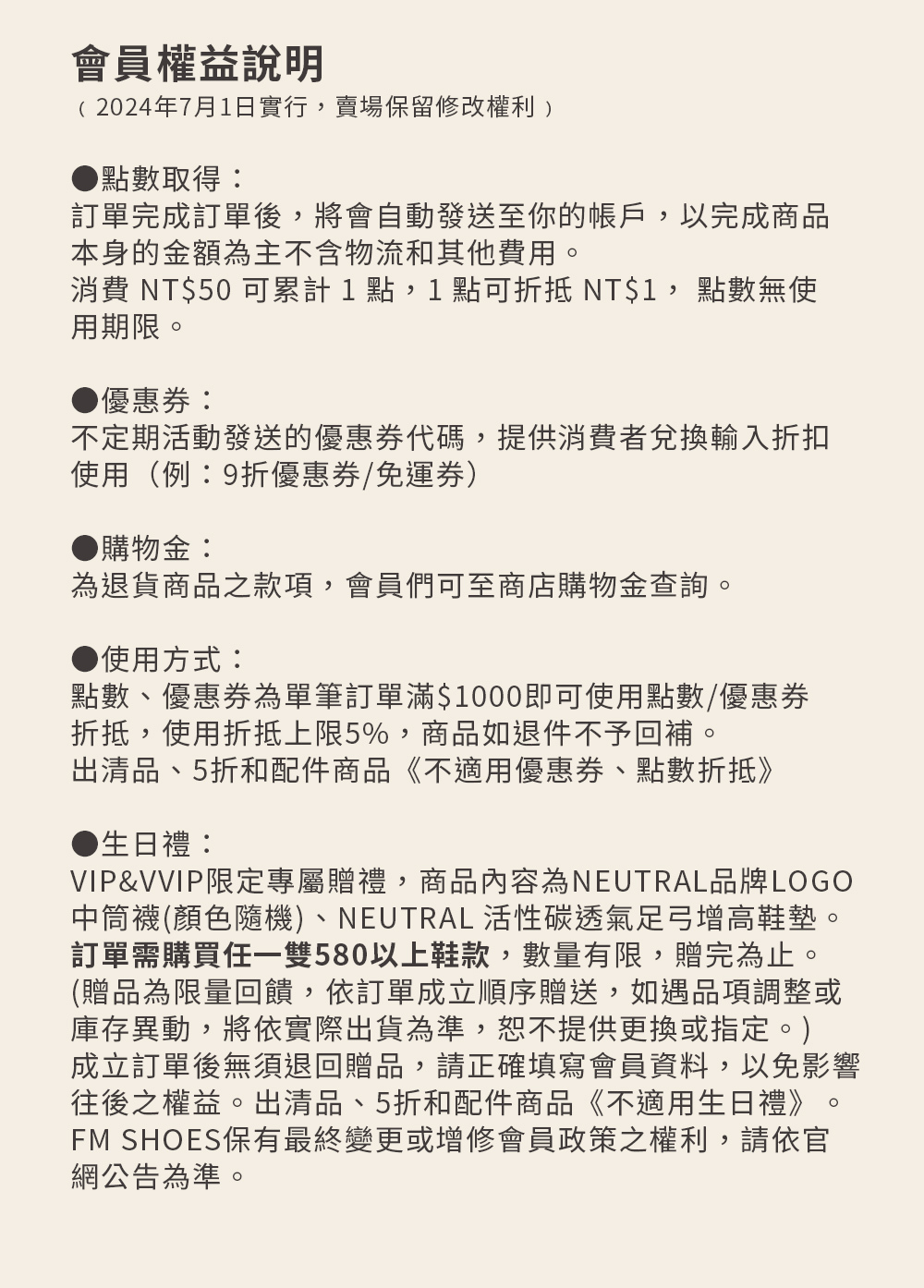 VIP PROGRAM / 會員權益說明