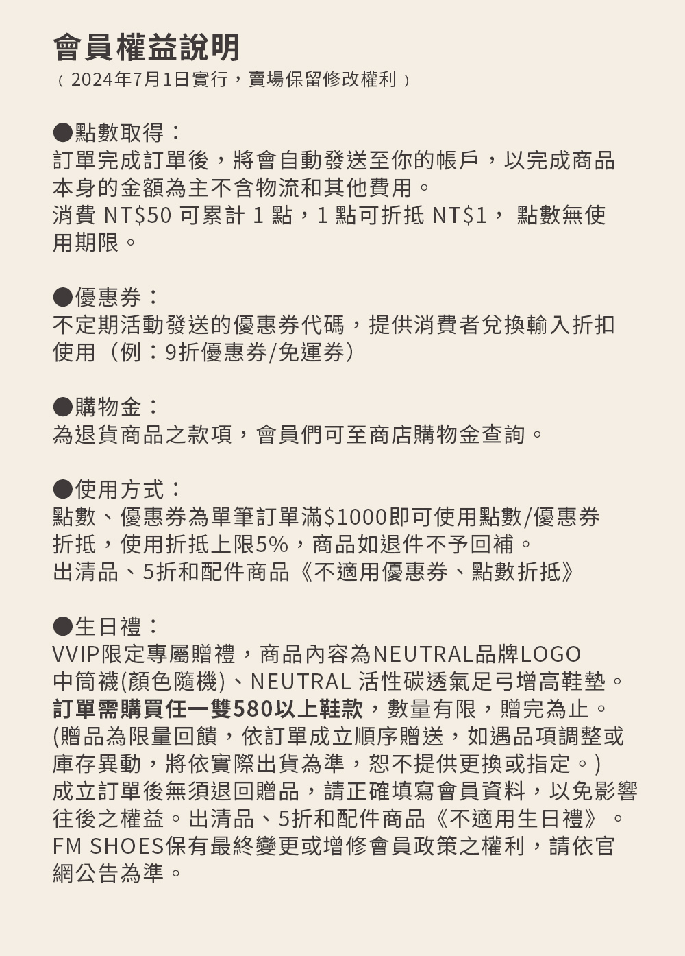 MEMBERSHIP BENEFITS / 會員權益說明